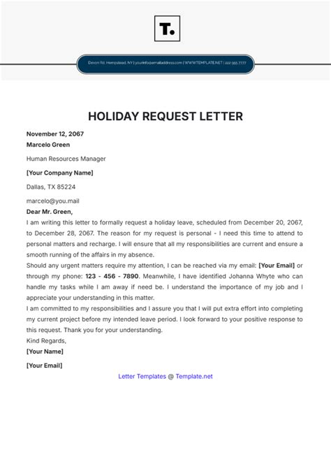Holiday Request Email Example - Use a polite tone and. How to write a vacation request email. Write a clear and concise subject line. Here is an example of a formal holiday request email: Writing a vacation request email: